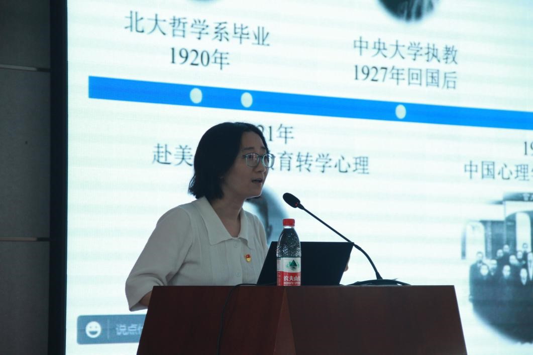 潘菽科技攻关突击队青年代表郭黎媛作了《辨清前进的方向——潘菽的几个选择》的专题报告。郭黎媛将我国现代著名心理学家、教育家、社会活动家、心理所原所长潘菽先生一生中最重要的几个选择娓娓道来,展现了其胸怀祖国、潜心研究、团结协作、甘为人梯、奖掖后学的老科学家精神。她还介绍了潘菽科技攻关突击队相关工作。最后,借潘菽所作《八十书怀》中“我生此际,我生逢辰。旋乾转坤,匹夫有份”,激励大家用实际行动当好国家队、国家人,扛起国家事、国家责,弘扬和传承老一辈科学家精神,把个人理想自觉融入国家发展伟业,不负昭华,奋勇前进。现场参会人员深受鼓舞。