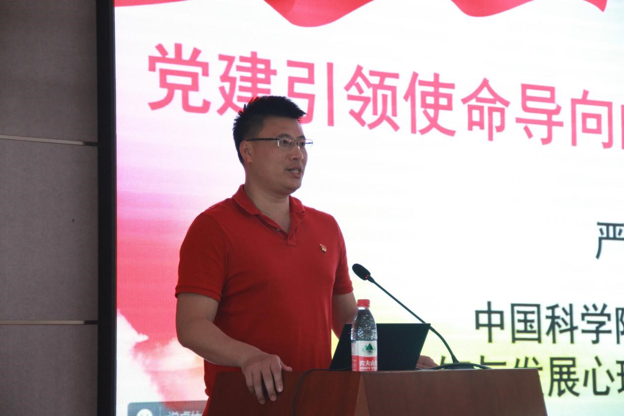 院优秀党务工作者严超赣作了题为《党建引领使命导向的建制化心理学科研》的专题报告。严超赣详细介绍了党的二十大对科技创新作出全面部署、习近平总书记对我院重要指示批示精神、院《关于开展使命导向的研究所年度评价的意见(试行)》以及二室党支部“两建两融”工作法。他表示,要以党建引领使命导向的建制化心理学科研,强化体系化建制化优势,更好激发创新活力,开展重大科技攻关,践行好新时期新征程国家战略科技力量主力军职责使命,努力实现高水平科技自立自强,为建设世界科技强国、实现中华民族伟大复兴奋力拼搏。