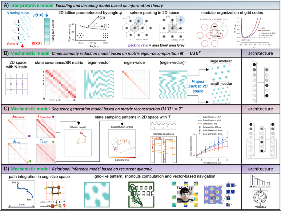 图3. 网格细胞的四类认知计算模型