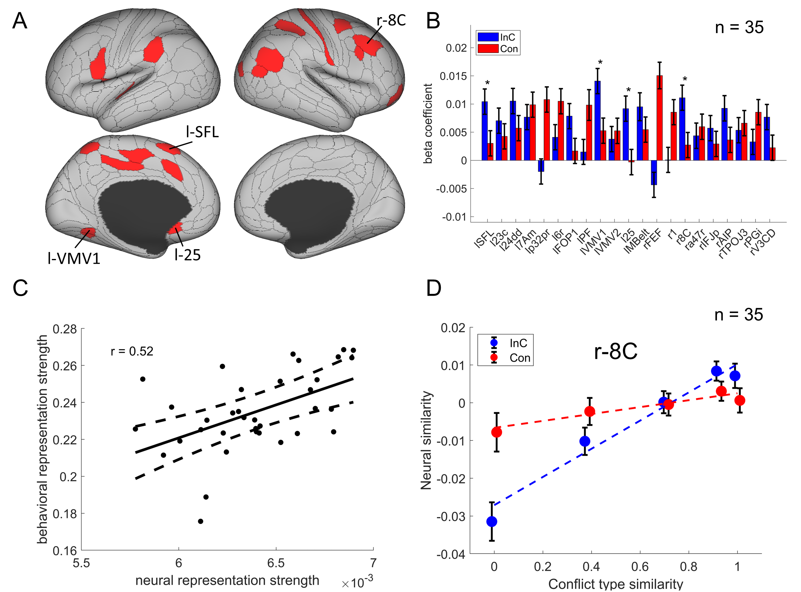 图3. 右侧背外侧前额叶(r-8C)对不同冲突任务进行参数化表征