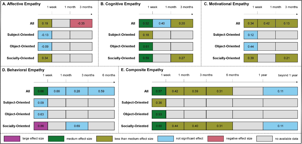Xiao Wu, Su-Chen Yao, Xue-Jing Lu, Yu-Qing Zhou, Ya-Zhuo Kong, & Li Hu. (2024). Categories of Training to Improve Empathy: A Systematic Review and Meta-Analysis. Psychological Bulletin,150 (10), 1237–1260. https://doi.org/10.1037/bul0000453