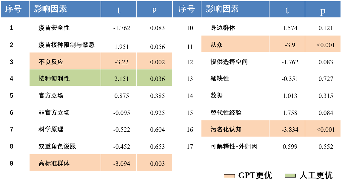 然而,尽管AI在某些方面表现突出,但在讨论疫苗接种的便利性的实际问题时,ChatGPT生成的信息说服力要显著低于人类专家撰写的信息。这表明,AI可能在某些情境下的表达方式不够贴近公众的情感需求,缺乏人类语言的灵活性和亲和力,导致AI在撰写此类信息时效果较差。