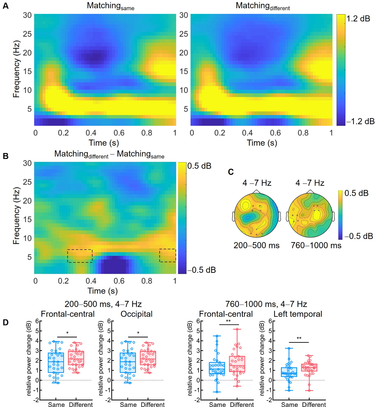 图5. 时频分析结果:Matching任务在theta频段上的主效应