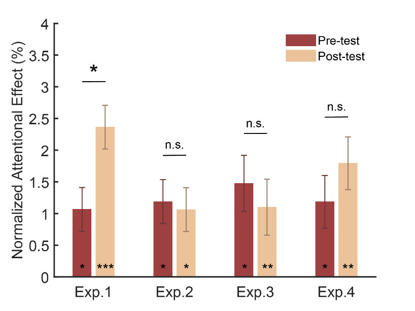 图2. 实验结果图-前测和后测的标准化注意效应对比