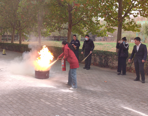 在下午的消防应急演练活动中,综合办公室组织科住物业项目部在心理所南楼南侧广场对后勤人员开展消防知识和能力培训,内容包括:讲解消防安全知识以及灭火器、消火栓的使用方法;消火栓出水操作演习及灭火实操;火警跑点演习。所内多名师生也现场观摩并亲身体验了灭火器的操作。