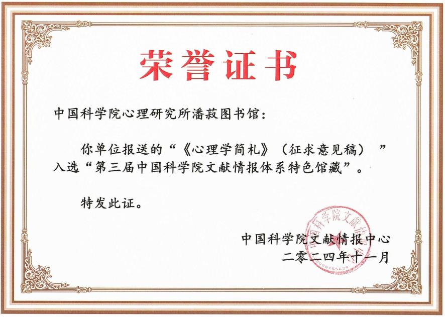 《心理学简札》(征求意见稿)入选第三届中国科学院文献情报体系特色馆藏
