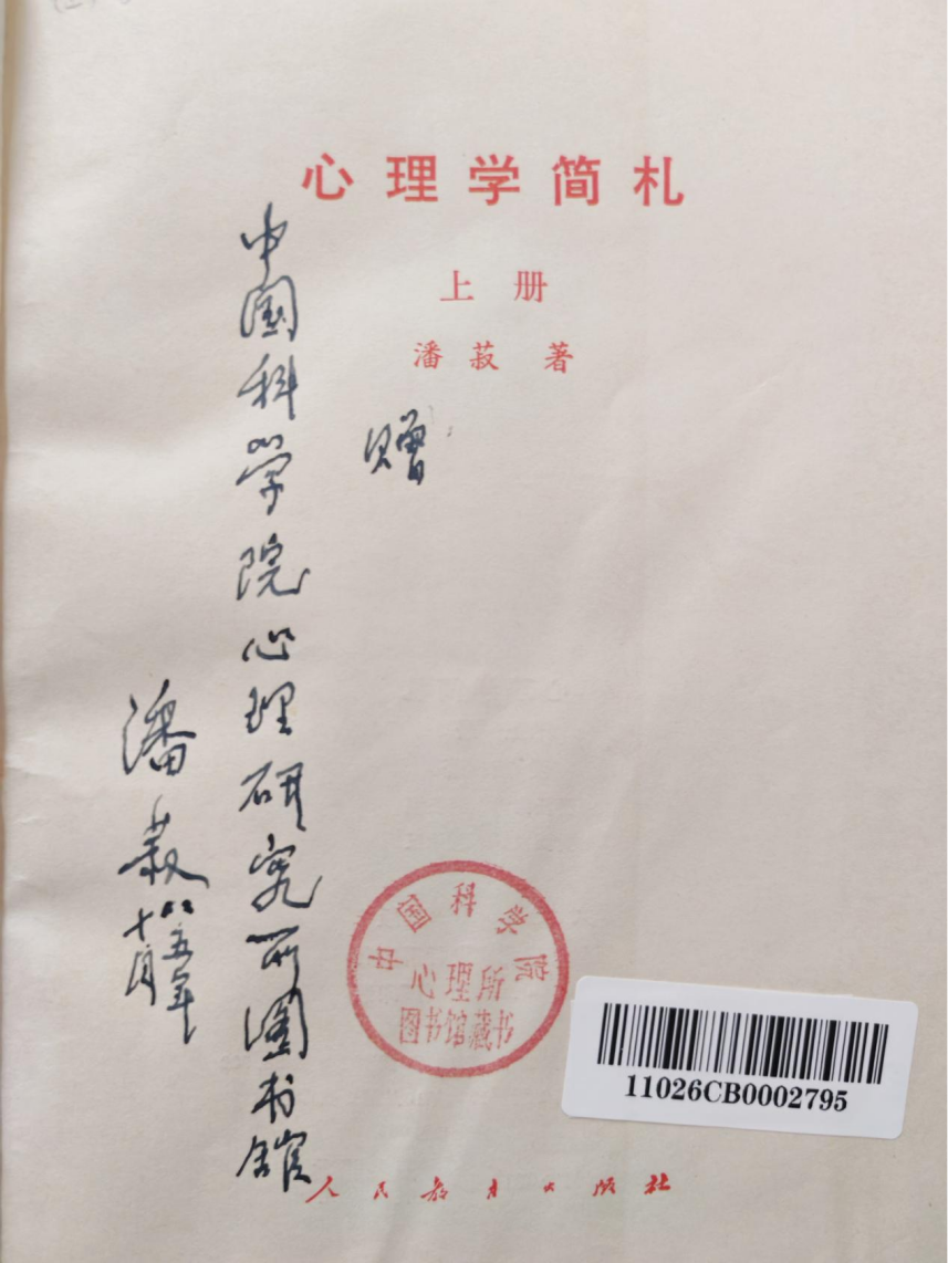 潘菽先生亲笔赠书
