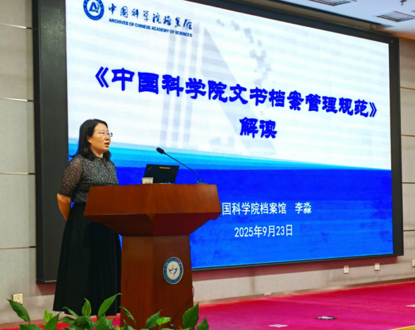 中国科学院档案馆副研究馆员李淼以文书档案管理为主题作报告,详细介绍了《中国科学院文书档案管理规范》修订的背景和主要内容,特别是重点解读了其中有关文书档案的管理职责与收集整理方面的内容。