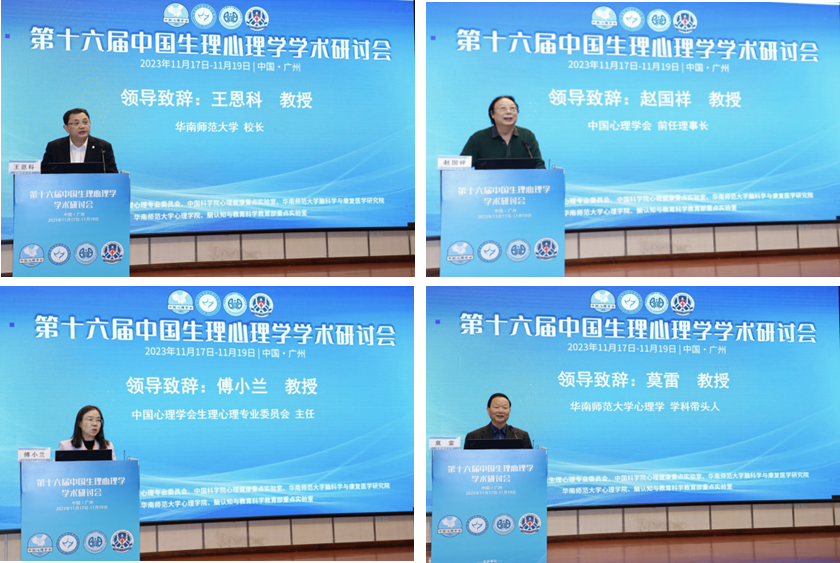 2023年11月17日至11月19日,由中国心理学会生理心理专业委员会、中国科学院心理健康重点实验室、华南师范大学脑科学与康复医学研究院、华南师范大学心理学院、脑认知与教育科学教育部重点实验室联合举办的第十六届中国生理心理学学术研讨会在华南师范大学广州校区石牌校园拉开帷幕。大会以 “心理健康与心理疾患的脑科学研究前沿”为主题,吸引了来自全国90余所大学和研究机构的400余名专家学者及师生代表的热情参与。