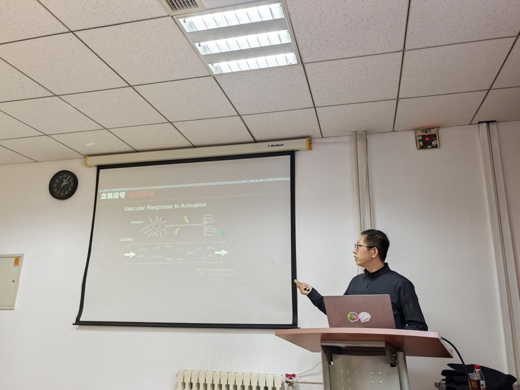 卢春明教授做专题报告 11日下午进行的首场培训特邀北京师范大学认知神经科学与学习国家重点实验室卢春明教授作题为“近红外光谱成像技术的原理与应用”的专题报告。卢春明系统介绍了fNIRS技术在语言交流、人际互动及教育神经科学等领域的前沿研究进展,分享了团队在多脑成像和社会互动研究中的最新成果。报告学术内容丰富、启发性强,引发了参训者的热烈讨论。