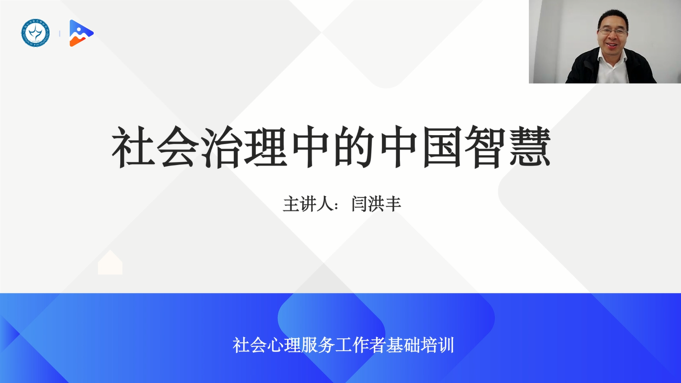4月16日下午的开班仪式上,心理所副教授黄峥、全国社会心理服务体系建设试点地区专家闫洪丰、安徽省宿州市委政法委常务副书记赵学东等做主旨讲话。闫洪丰以“社会治理中的中国智慧”为题作讲座。