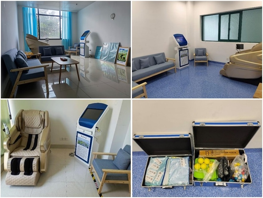 项目在武汉市金银潭医院、武汉儿童医院和咸宁市中心医院进行医护空间标准化建设。医护空间作为项目心理健康服务阵地,为医院有需要的医护人员提供免费的心理学科普、情绪放松、心理减压、个体心理咨询等服务。目前,三家医院的医护空间标准化建设全部完成并挂牌正式面向医护人员开放。