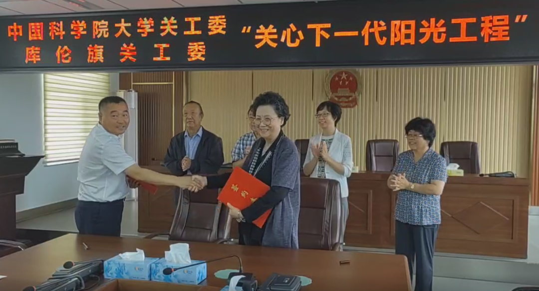 随后,中国科学院大学关心下一代工作委员会与库伦旗关心下一代工作委员会签署了“关心下一代阳光工程”合作框架协议。吕晓澎在签约仪式上讲话,希望未来与心理所共同推动库伦旗教育事业发展,充分运用中科院的科技资源、教育资源为贫困地区做好科学知识和教育理念的输送。