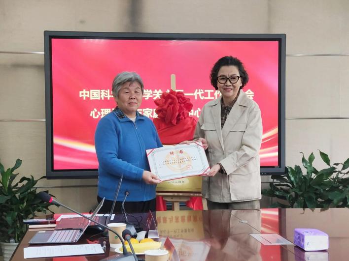 会上,陈雪峰、吕晓澎共同为“心理健康与家庭教育中心”揭牌。杨玉芳将担任心理健康与家庭教育中心主任。吕晓澎向杨玉芳颁发了国科大关工委专家委员会委员证书。