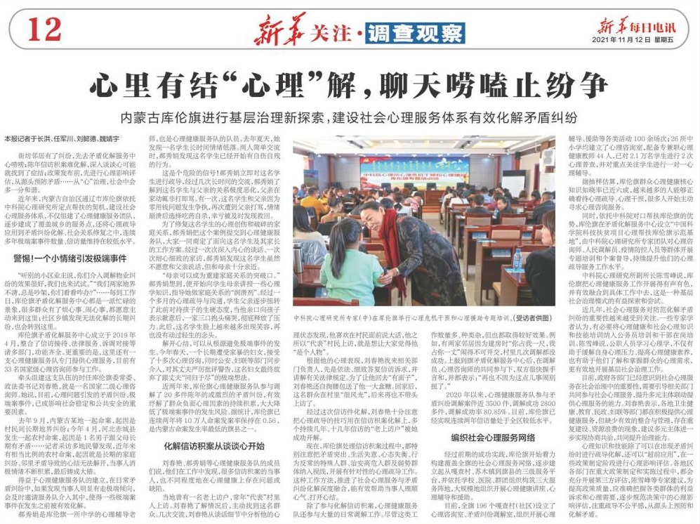 【新华每日电讯】内蒙古库伦旗:心里有结“心理”解,聊天唠嗑止纷争