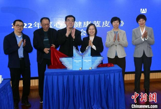 2022版心理健康蓝皮书——《中国国民心理健康发展报告(2021-2022)》举行发布揭幕仪式。 中新社记者 孙自法 摄