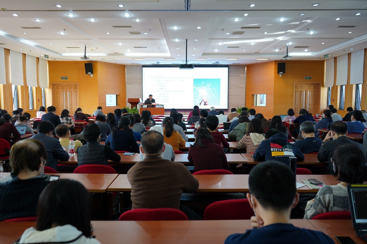 为深入学习习近平新时代中国特色社会主义思想,学习贯彻党的十九届五中全会精神,2020年12月10日下午,心理所党委在南楼9层会议室举办了学习贯彻党的十九届五中全会精神辅导报告会。本次报告会采取线上与线下相结合的方式进行。心理所领导班子、党委委员、纪委委员、各支部书记、职能部门正副处长、研究室正副主任、年轻干部学习小组成员、研究生党员、离退休党员、团员代表等共近300人参加了会议。报告会由心理所党委副书记、纪委书记陈雪峰主持。