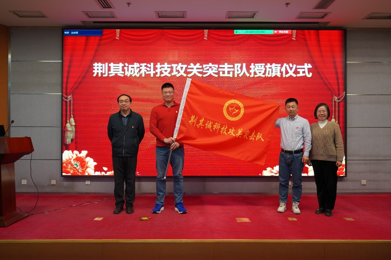 所长傅小兰为荆其诚科技攻关突击队授旗