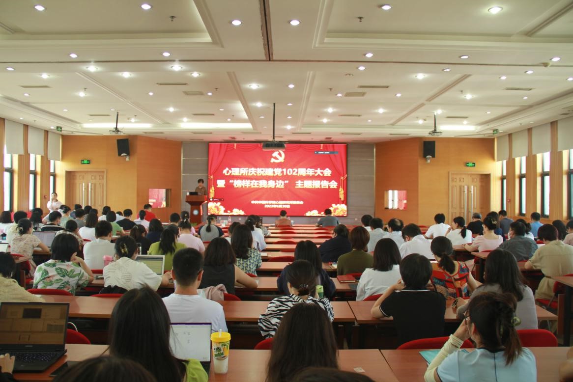 为庆祝中国共产党成立102周年,6月30日下午,永乐汇党委在心理所和谐楼9层报告厅举办庆祝建党102周年大会暨“榜样在我身边”主题报告会。心理所职工党员、研究生党员等180余人现场参加了会议,离退休党员等30余人线上参加会议。大会由心理所副所长陈雪峰主持。