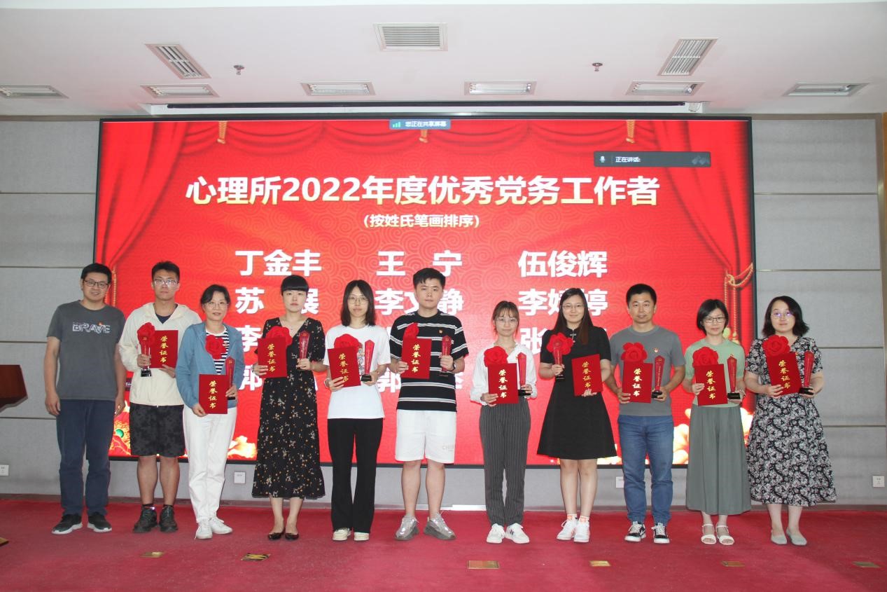 最后,孙向红作总结发言。她强调,102年来,中国共产党的初心使命从未改变,带领中国人民实现中华民族伟大复兴的目标从未改变。研究所面对心理科学发展面临着新问题,要准确把握新形势新挑战新要求,要进一步加强党对科技工作的全面领导,切实将学习贯彻习近平新时代中国特色社会主义思想主题教育成果转化为研究所高质量发展的强大动力,要充分发挥好党组织战斗堡垒作用和党员先锋模范作用,大力弘扬科学家精神,按照院党组要求打好打赢“抢占科技制高点”攻坚行动战,促进产出更多重大创新成果,为加快实现科技自立自强做出应有贡献。