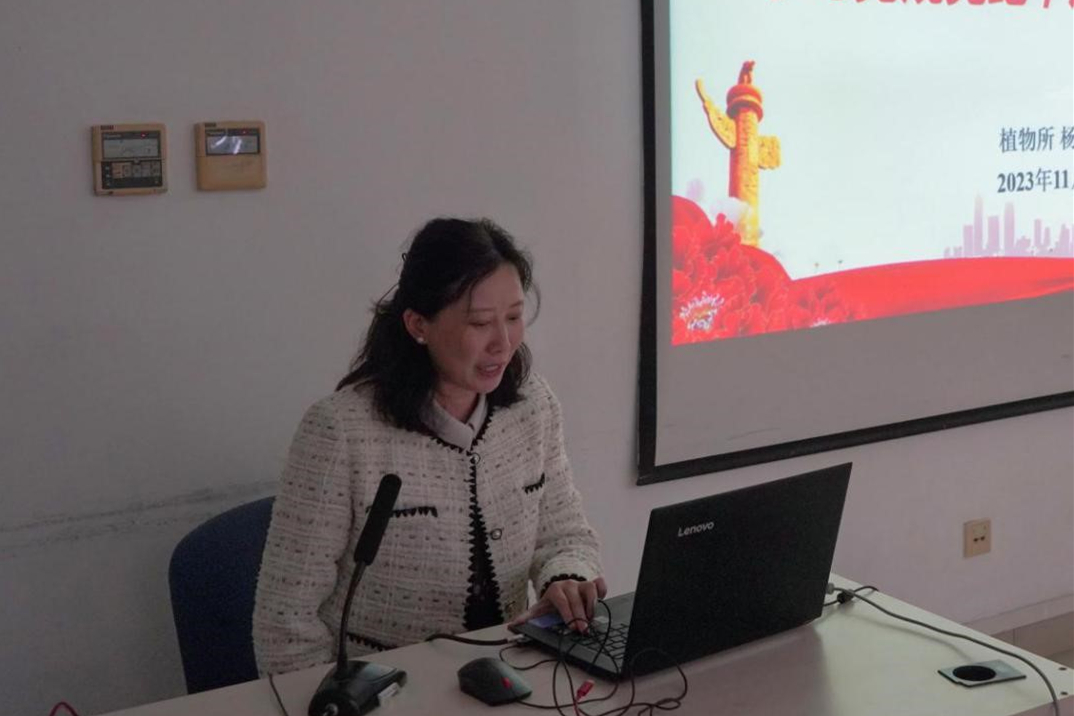 中国科学院党建专员团队成员、植物所党办主任杨春晖应邀作了题为“学习党规党纪 规范党费使用”的报告,从党规党纪相关的重要规章制度、党费收缴与使用、常见问题等方面系统讲解了党内法规体系等内容,引导党员干部增强纪法意识,知敬畏、存戒惧、守底线,组织开展好党支部各项工作。