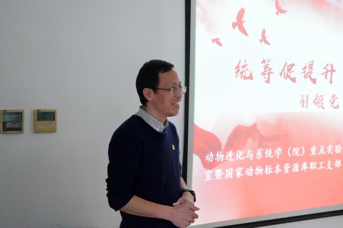 中国科学院动物研究所动物进化与系统学院重点实验室暨国家动物标本资源库职工党支部书记、研究员朱朝东应邀作了题为“统筹促提升 引领党建科研相融合”的报告,简要介绍了动物进化与系统学(院)重点实验室的沿袭,并着重分享了实验室党支部党建与科研深度融合的特色工作,如组建野外考察临时党支部、老科学家访谈、结合科学普及开展党建活动等,这些工作在党建引领科研发展方面发挥了重要作用,生动阐释了将个人的理想追求融入党和国家事业之中的深刻内涵。