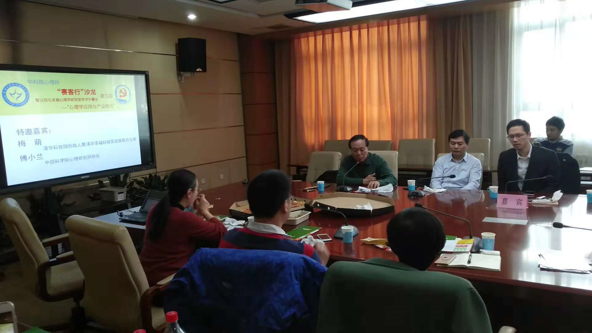 中午,“赛客行”沙龙在轻松愉快的气氛中在心理所和谐楼一层VIP会议室正式开始。严超赣主持本次沙龙,他首先介绍了本次沙龙的主题和目的,并对梅萌一行的到来表示欢迎。