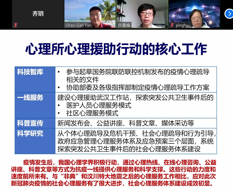 陈雪峰介绍心理所抗疫心理援助行动
