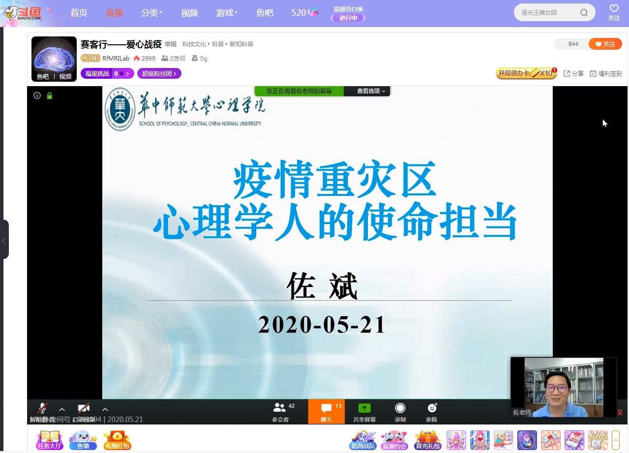 在这次疫情中,身处主战场的湖北心理学工作者重任在肩。华中师范大学心理学院教授佐斌分享了华中师范大学团队在七个不同方面展开的心理服务工作。包括主动响应,发起行动号召;开通心理援助热线,服务近2万次,服务满意度达到92.2%;开展公众心理疏导,通过传统纸媒和网络媒体撰写抗疫心理文章,推出视频心理讲座;开展现场与网络心理干预;积极参与社区的心理支持与人文关怀;开展社会心态调研和心理咨政;开展人员培训,规范专业心理服务。佐斌指出,疫情期间心理学人展现出了高度的专业素养、社会责任感和积极行动,在未来的心理服务工作中,要更好地做到统筹协同、规范形象并助力人才培养。