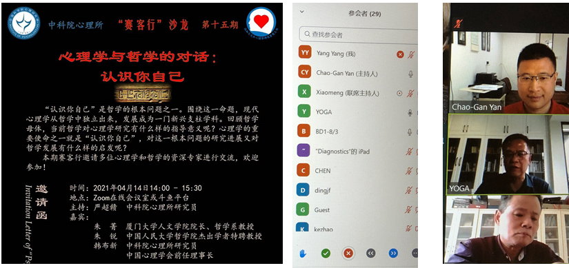4月14日下午,永乐汇认知与发展心理学研究室党支部举办第十五期“赛客行”沙龙活动。此次活动主题为“心理学与哲学的对话:认识你自己”,通过线上会议的形式召开,并开通网络直播。活动由支部书记严超赣研究员主持。