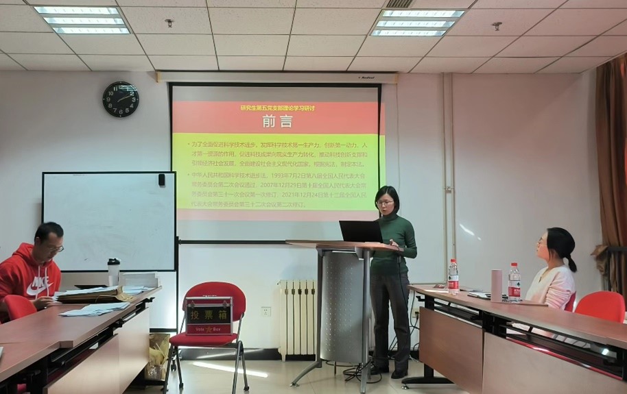 最后,伍俊辉讲党课,带领大家学习《中华人民共和国科学技术进步法》。她重点介绍了《科技进步法》的修订背景、修订的重要意义、重点修订或新增内容等,并强调新修订的《科技进步法》是贯彻落实习近平法治思想、推进全面依法治国的重要举措,是贯彻落实党中央关于科技创新决策部署的重要实践,是依法推进科技治理体系和治理能力现代化的有力保障。与会党员结合自身思考分享了学习体会,纷纷表示会按要求将《科技进步法》的相关要求落实到实际工作学习中。