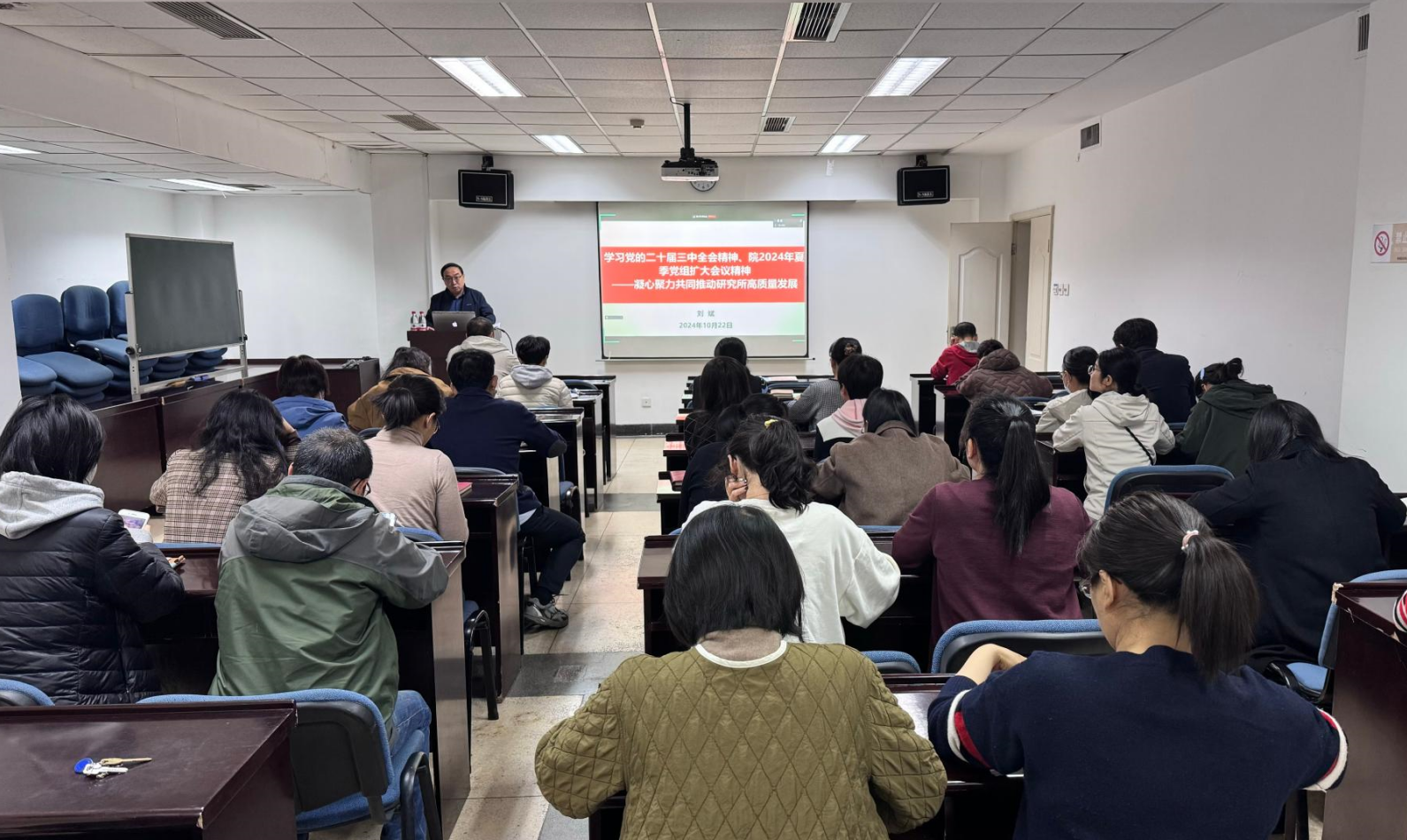 10月22日上午,管理支撑与学会联合党支部在心理所北楼421会议室开展主题党日活动,集中学习传达党的二十届三中全会精神、全国科技三会精神和院党组2024年夏季扩大会议精神,并对支部党纪学习教育开展情况进行复盘总结。会议由支部书记张永博主持,主管党委委员、纪委书记刘斌参会指导,支部41名党员参会。