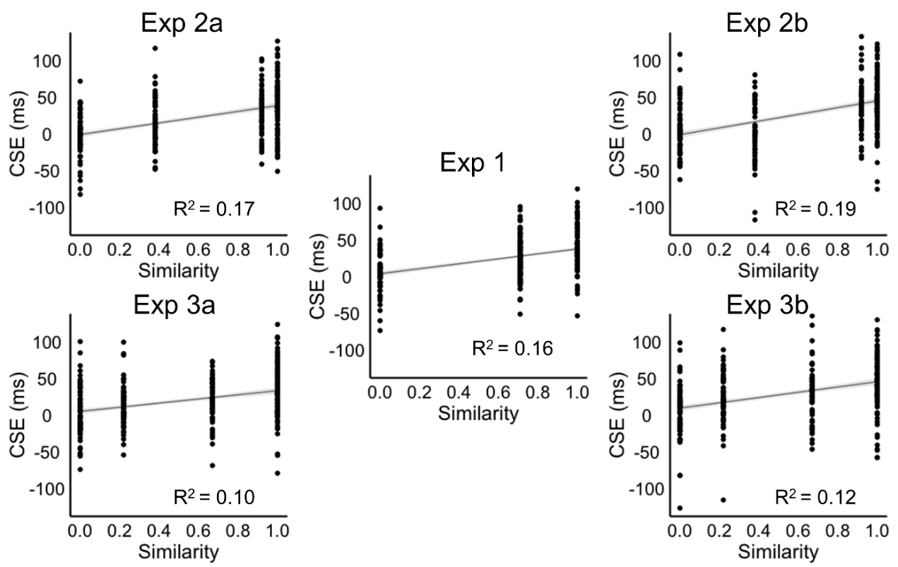 结果发现,当冲突之间的相似性越大,两种冲突之间的一致性序列效应也越大。冲突相似性可以线性调节一致性序列效应的大小。另外,研究结果也说明冲突之间的一致性序列效应不是全(显著大于0)或无(不显著)的,而是连续的。这些结果为整合的认知控制学习理论提供了强有力的证据。
