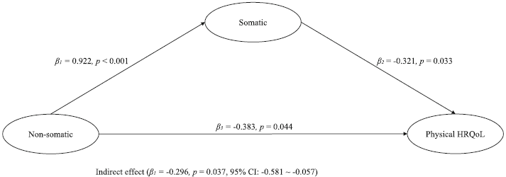 图1. MDD不同因子影响躯体健康相关生活质量的中介路径