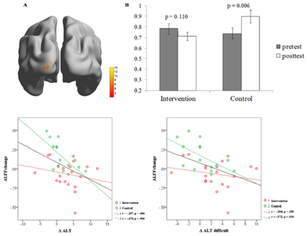 图4. 记忆训练对枕叶ALFF的影响