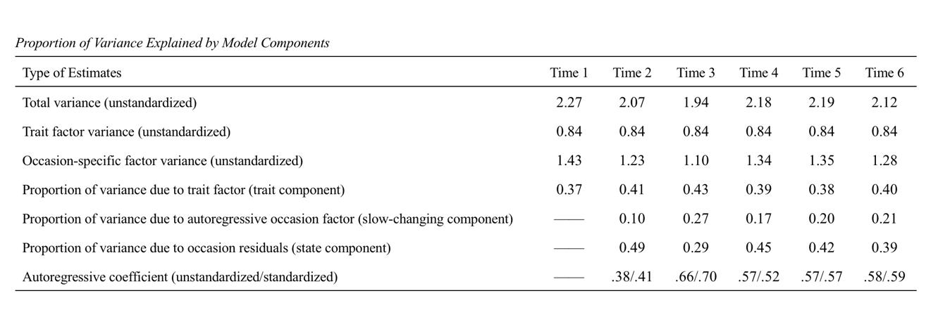 图1. 稳定特质、缓慢变化特质及状态成分解释的变异比重