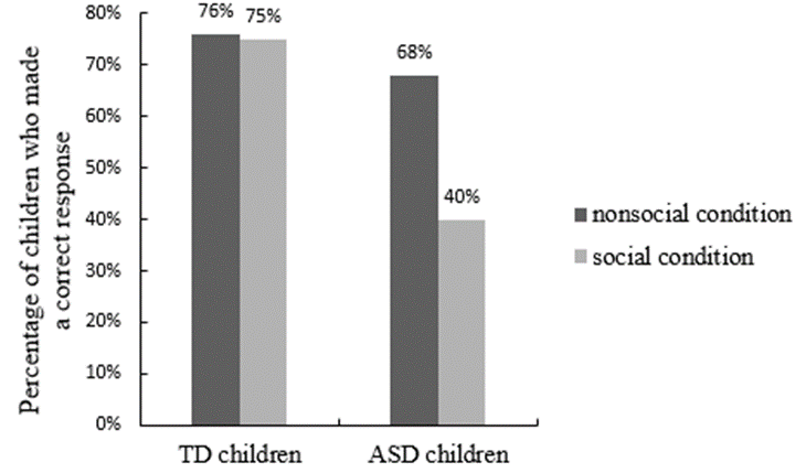 针对此问题,中国科学院行为科学重点实验室朱莉琪研究组的研究人员采用眼动和行为相结合的方法,探究了54名孤独症儿童和50名典型发育儿童(作为对照组)在动态社交场景中对联合意图和个人意图的理解。