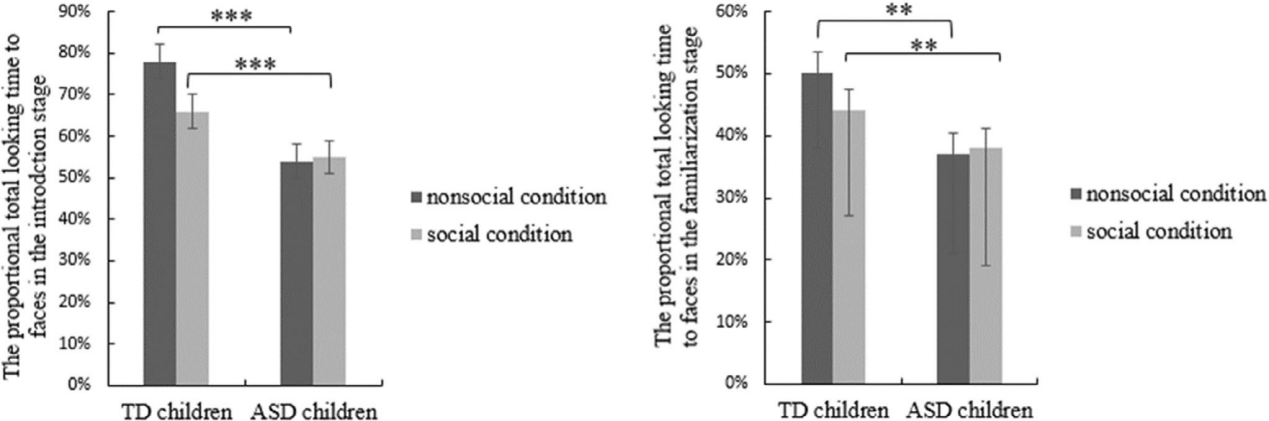 图4.在引入和熟悉阶段中对面部注视时间的比率