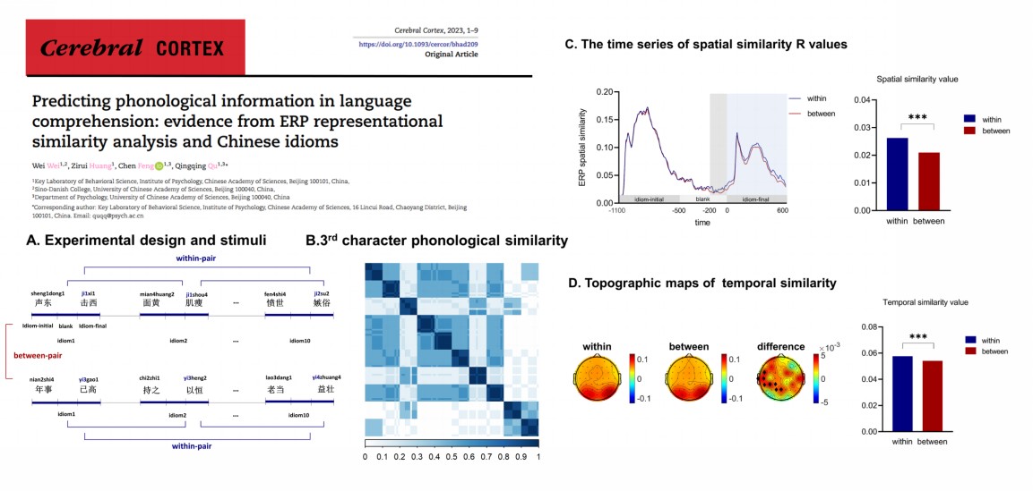 论文信息:Wei Wei, Zirui Huang, Chen Feng, Qingqing Qu* (2023). Predicting phonological information in language comprehension: evidence from ERP representational similarity analysis and Chinese idioms, Cerebral Cortex, bhad209, https://doi.org/10.1093/cercor/bhad209