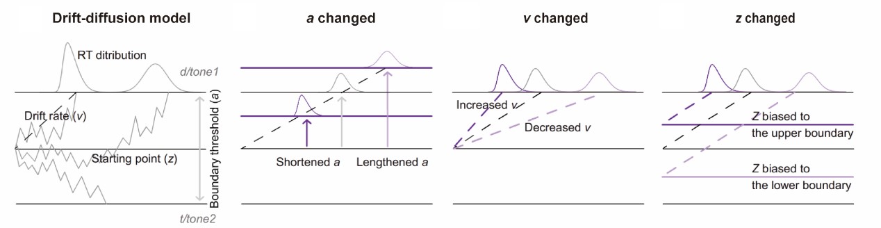图4: 层级漂移扩散模型(HDDM)与TMS对模型参数调控效应示意图