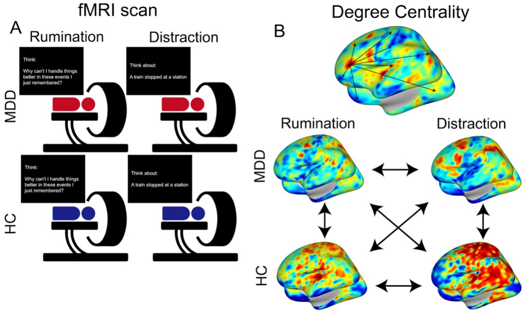 反刍思维(rumination)是指个体对发生在自己身上的负面事件的反复思考。它不仅是抑郁症患者的常见症状,也是导致抑郁发作的风险因素和接受治疗后的重要残留症状,容易导致抑郁复发。为考查抑郁症患者在进行反刍思维时的脑网络特征,永乐汇与苏州市广济医院使用功能磁共振成像手段开展了一项合作研究。