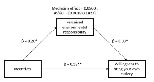 图3.感知环境责任在不同种类奖励对回收行为意愿影响的中介作用图