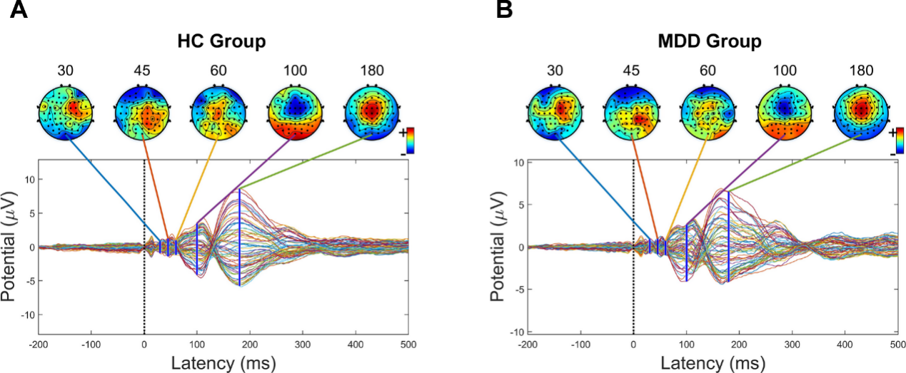 经颅磁刺激同步脑电(TMS-EEG)是结合了经颅磁刺激(TMS)和脑电图(EEG)的无创神经检测技术,被广泛用于研究大脑皮层的功能及其神经可塑性。重度抑郁症通常伴随显著的认知功能障碍,对患者的社会功能造成严重损害。然而在抑郁症患者中,TMS-EEG指标与抑郁严重程度、认知功能损伤程度的关系尚不清楚。