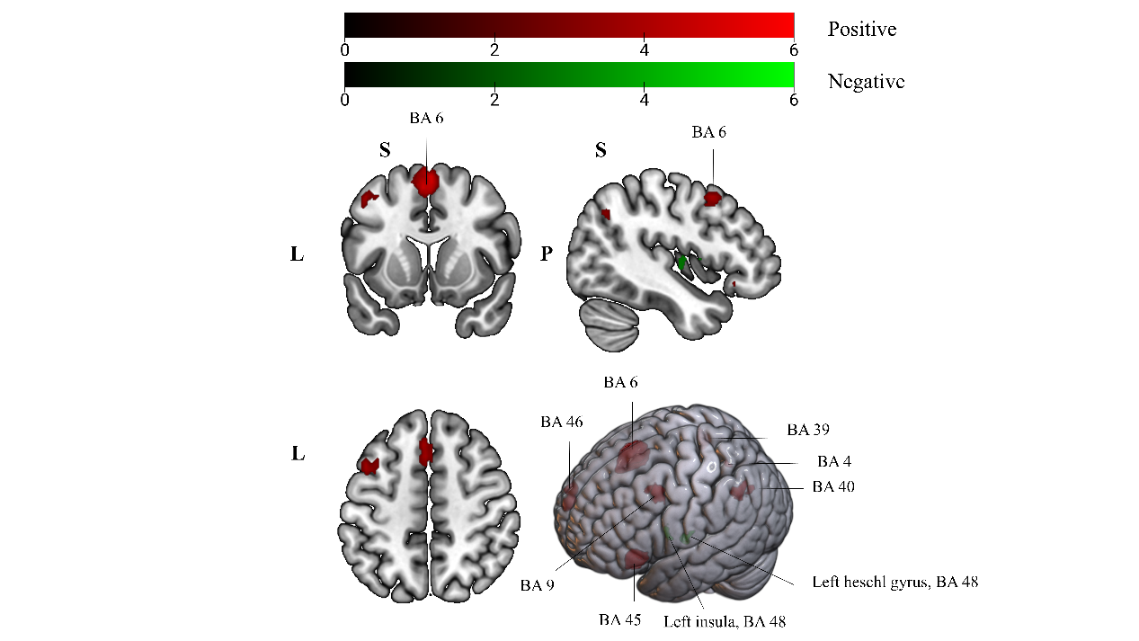 子研究2综合15项焦虑/抑郁障碍个体的fMRI研究,使用SDM-PSI进行基于坐标的脑影像元分析,发现焦虑和抑郁障碍个体在认知重评任务中均激活了认知控制区域,但存在差异:抑郁障碍个体抑制了情绪加工区域,而焦虑障碍个体未能有效抑制情绪加工区域(见图2)。