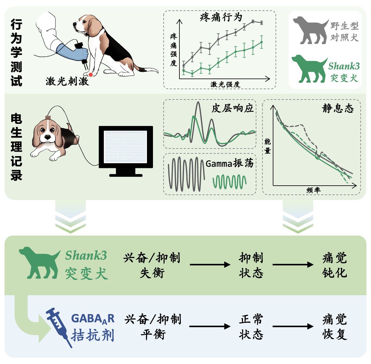心理所合作研究揭示孤独症突变犬模型痛觉感知加工异常的神经机制