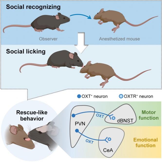 OXTPVN-OXTRCeA和OXTPVN-OXTRdBNST通路分别控制了救援行为的情绪和运动功能