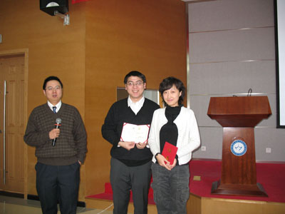 二等奖获得者张警吁(中)、张亮(右)领奖