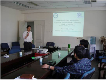 根据中国科学院与澳大利亚科学院(AAS)2009-2010交流协议,应永乐汇心理健康院重点实验室及神经心理学与应用认知神经科学实验室(NACN-Lab)陈楚侨研究员的邀请,澳大利亚Griffith 大学健康与医学研究所(Griffith Institute for Health and Medical Research)的 David Shum教授抵达心理所NACN-Lab,开始为期两周的工作交流。