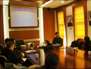 一些国际知名的学者与临床精神病专家受到心理所院重点健康实验室神经心理学与应用认知神经科学(NACN)课题组陈楚侨研究员的邀请,于2009年12月8日来参加一个神经精神障碍研究的研讨会。与会的学者有来自澳大利亚昆士兰脑所(Queensland Brain Institute)的John McGrath教授,香港大学的沈伯松教授和Grainne McAlonan博士。张复炽医生带着来自香港青山医院(Castle Peak Hospital)的精神病专家团队,也参加了此次研讨会。
