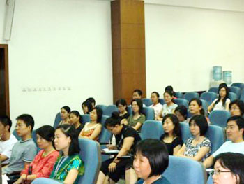 在报告中,唐教授主要介绍了他和他的团队对“整体身心调节法(IBMT)”的效果及机制进行的研究成果。精彩的报告和研究引起了在场学生及老师的高度兴趣,很多听众踊跃提问。在一个多小时的问答结束之后,很多学生依然意犹未尽,与唐教授进行了更深入的交流。